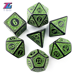 가장 인기있는 DND 게임 구성 요소 질감 패턴이있는 다면체 주사위 세트 RPG 보드 게임 액세서리 용 7 개 주사위 세트
